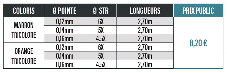 - Bas de ligne sans nœuds, conicité régulière pour une présentation ultra-discrète